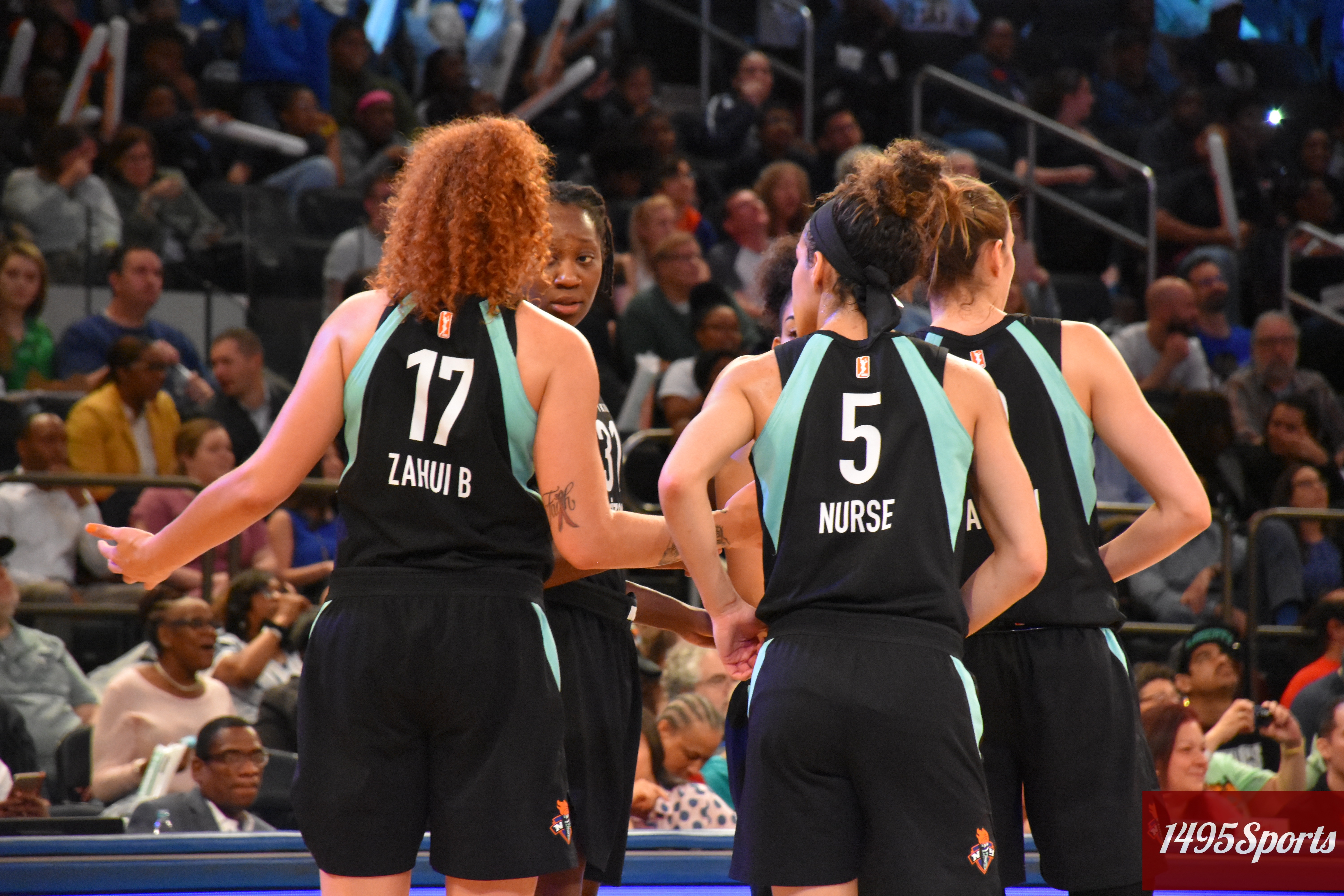New York Liberty Huddle. Photo by: Stacy Podelski/1495Sports