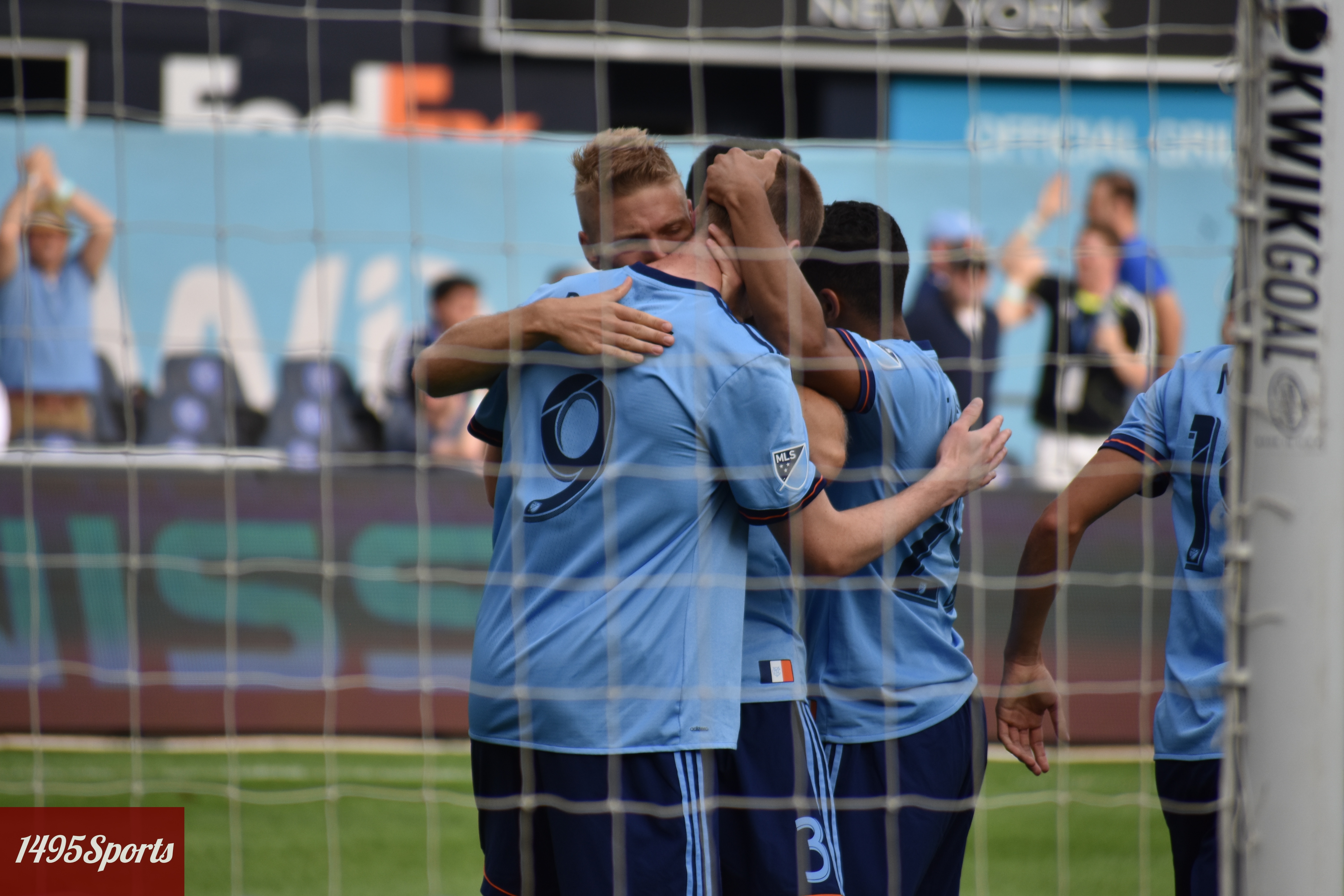 New York City FC celebrating a goal at Yankee Stadium. Photo by: Stacy Podelski/1495Sports