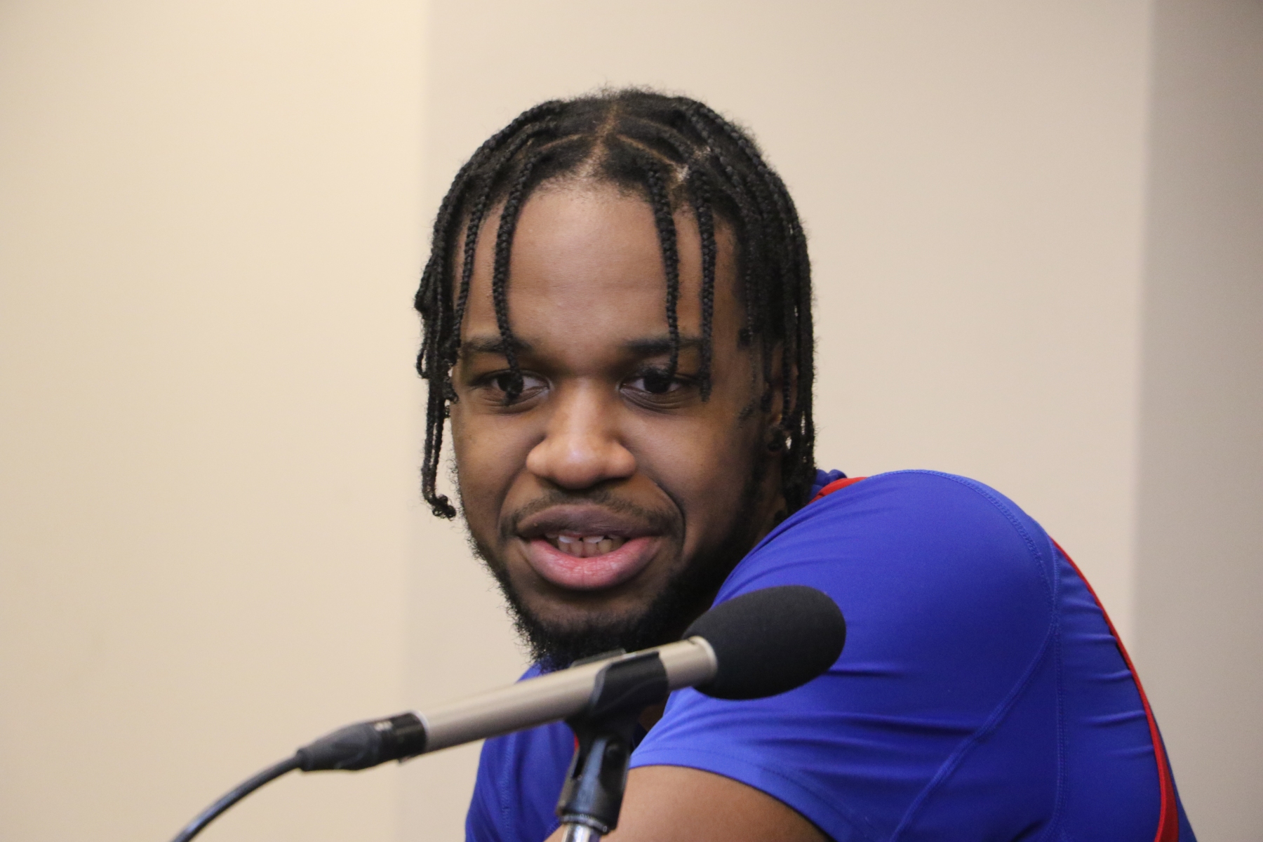 In the postgame press conference, Pirates coach Shaheen Holloway addressed the media by himself with no players on the podium with him: