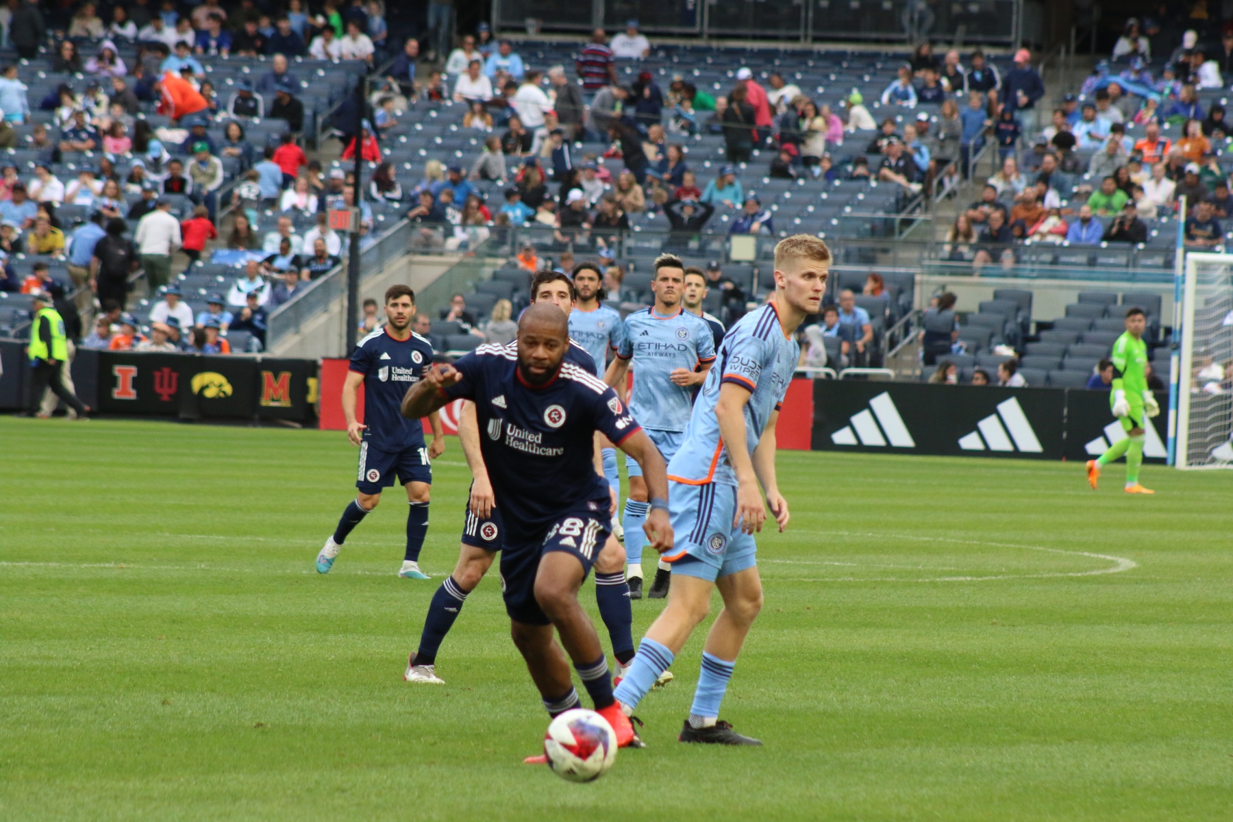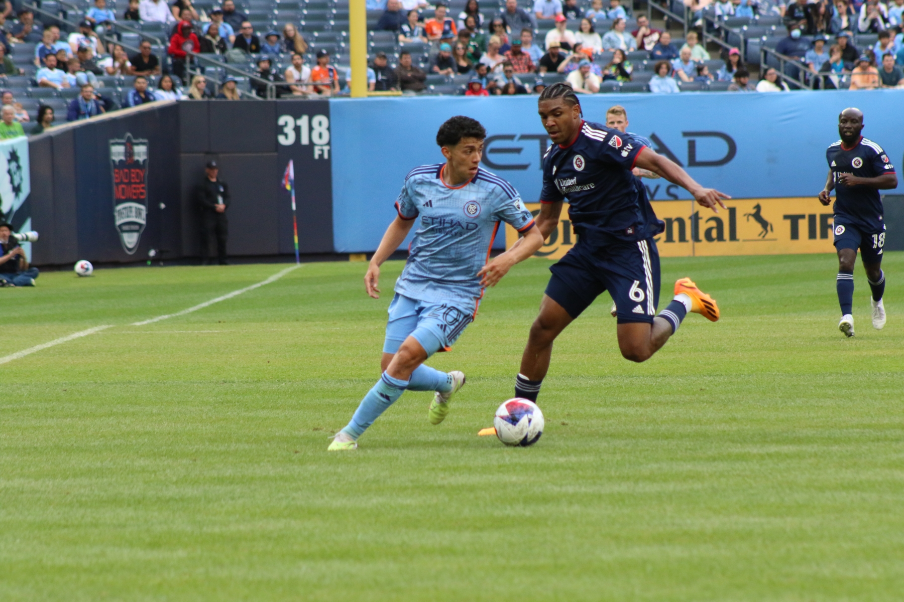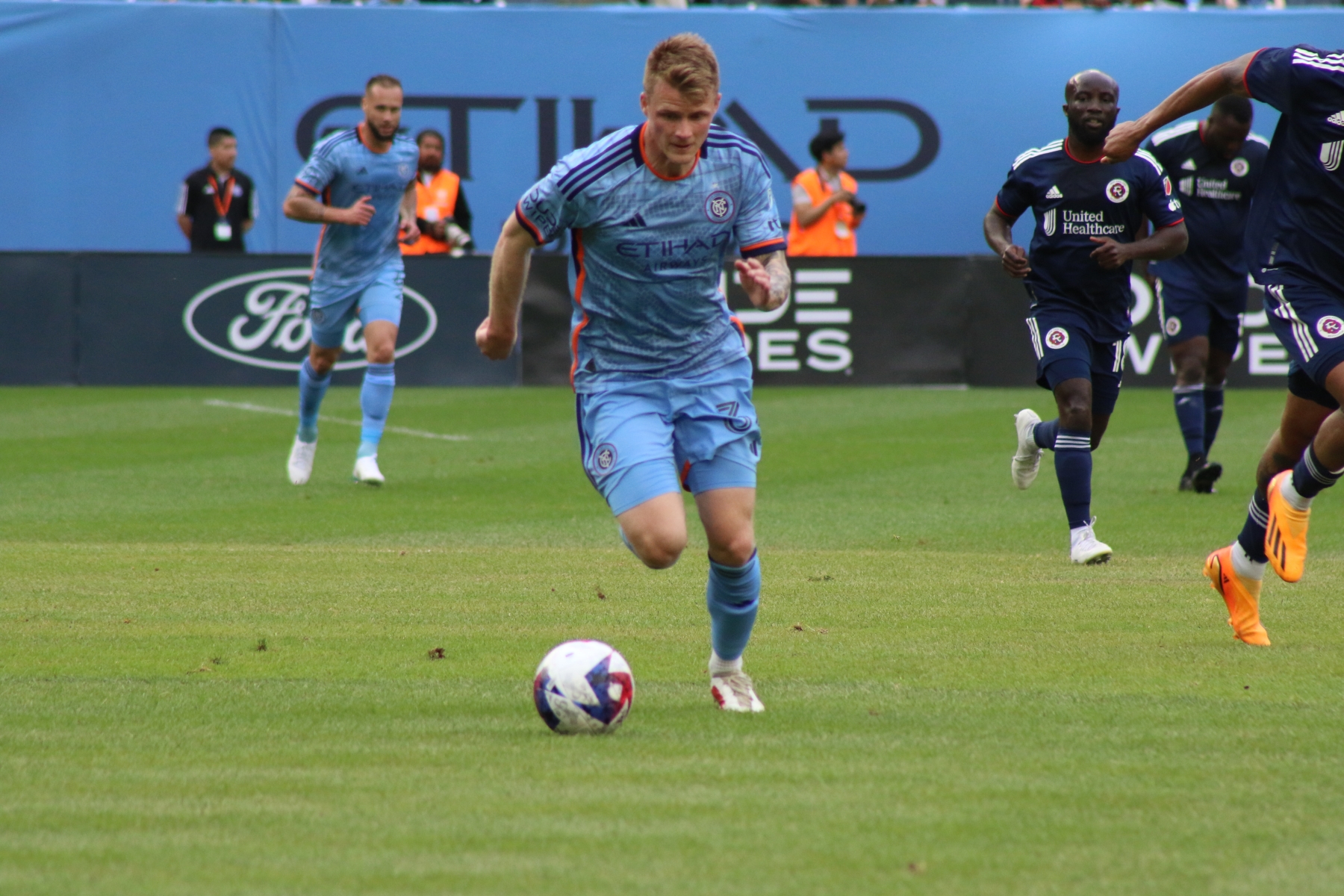 Then New England had their first shot of the night at the 10′ mark, as Matt Polster blasted a right footed shot high of the net. NYCFC had back-to-back chances by Alfredo Morales and Keaton Parks, prior to an attempt at the 18′ by Pereira.