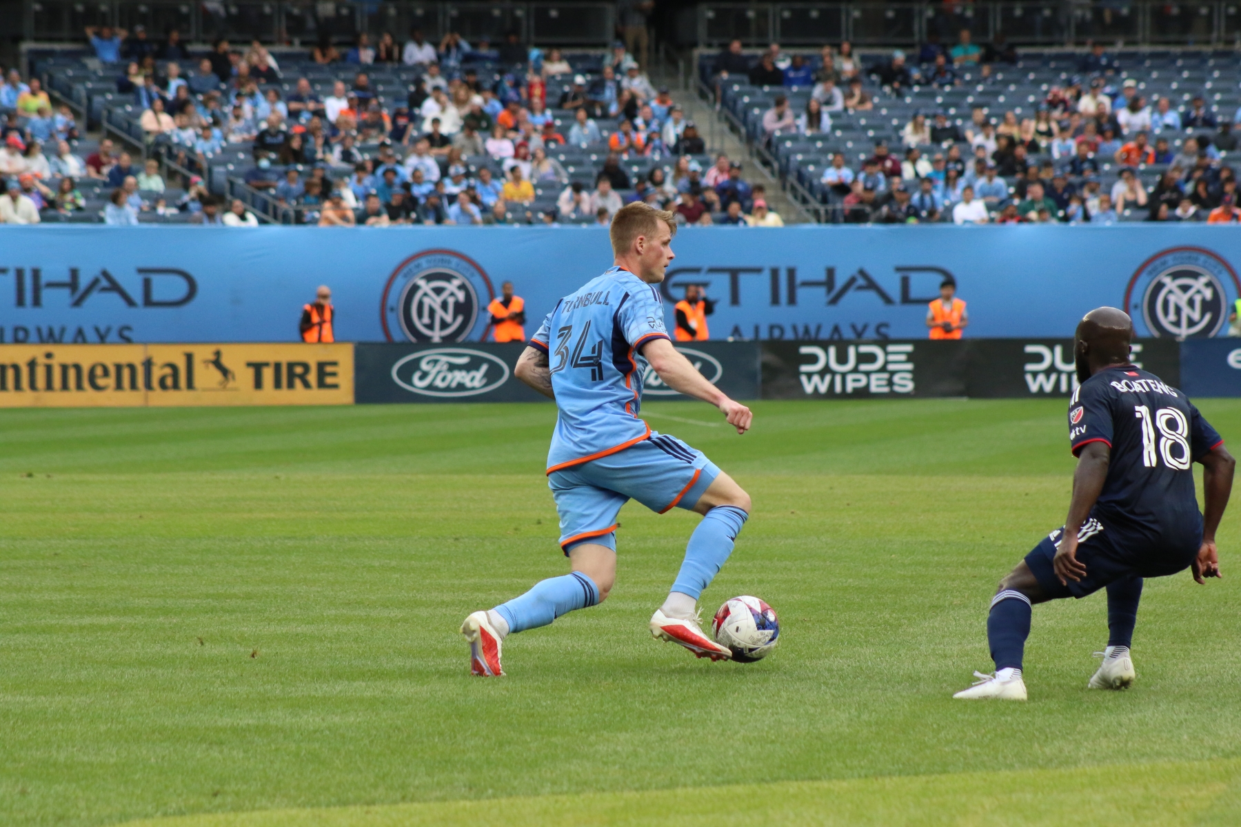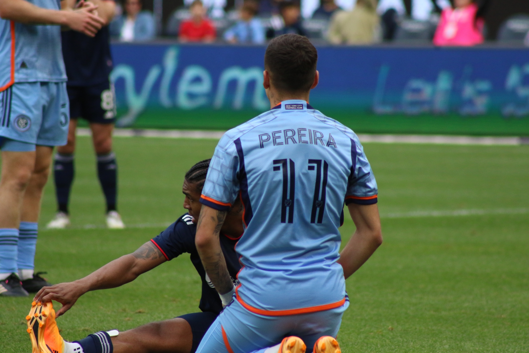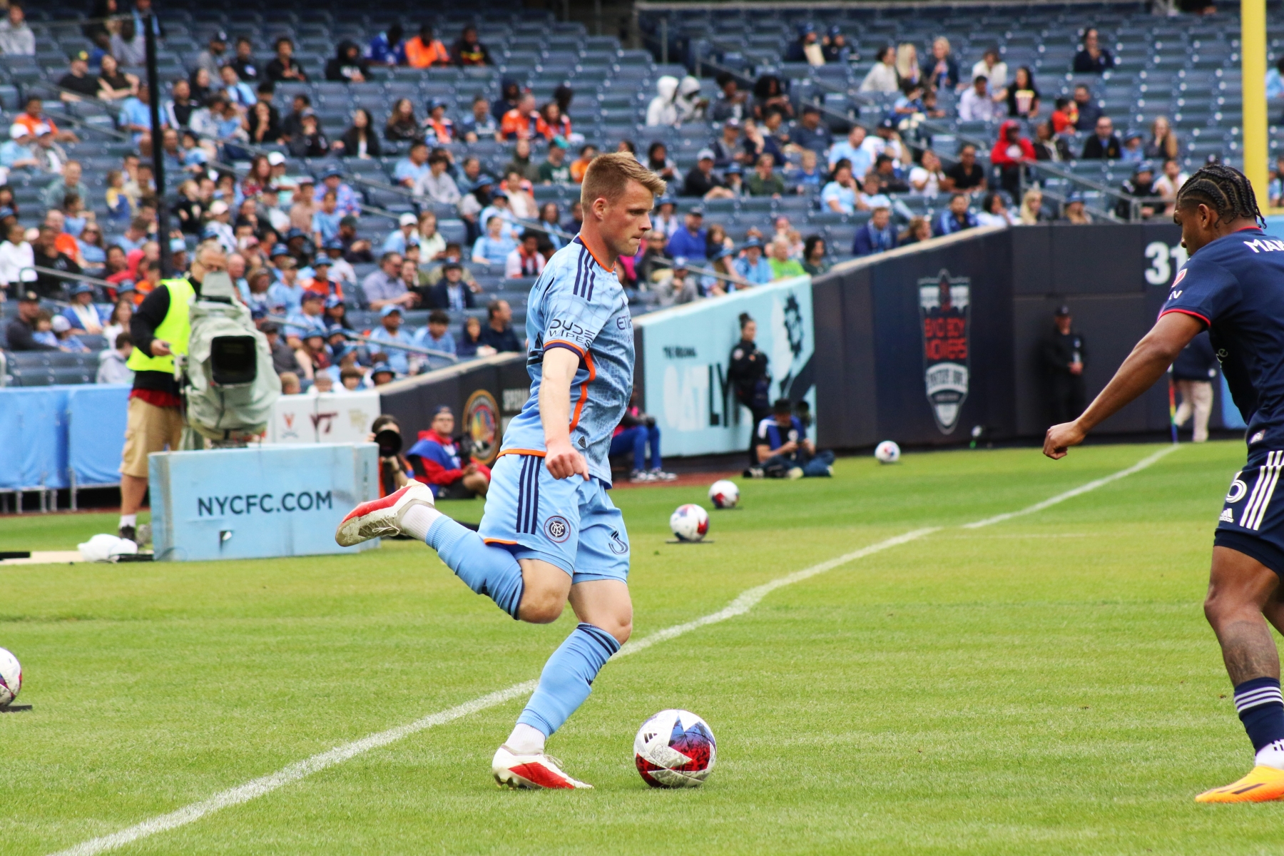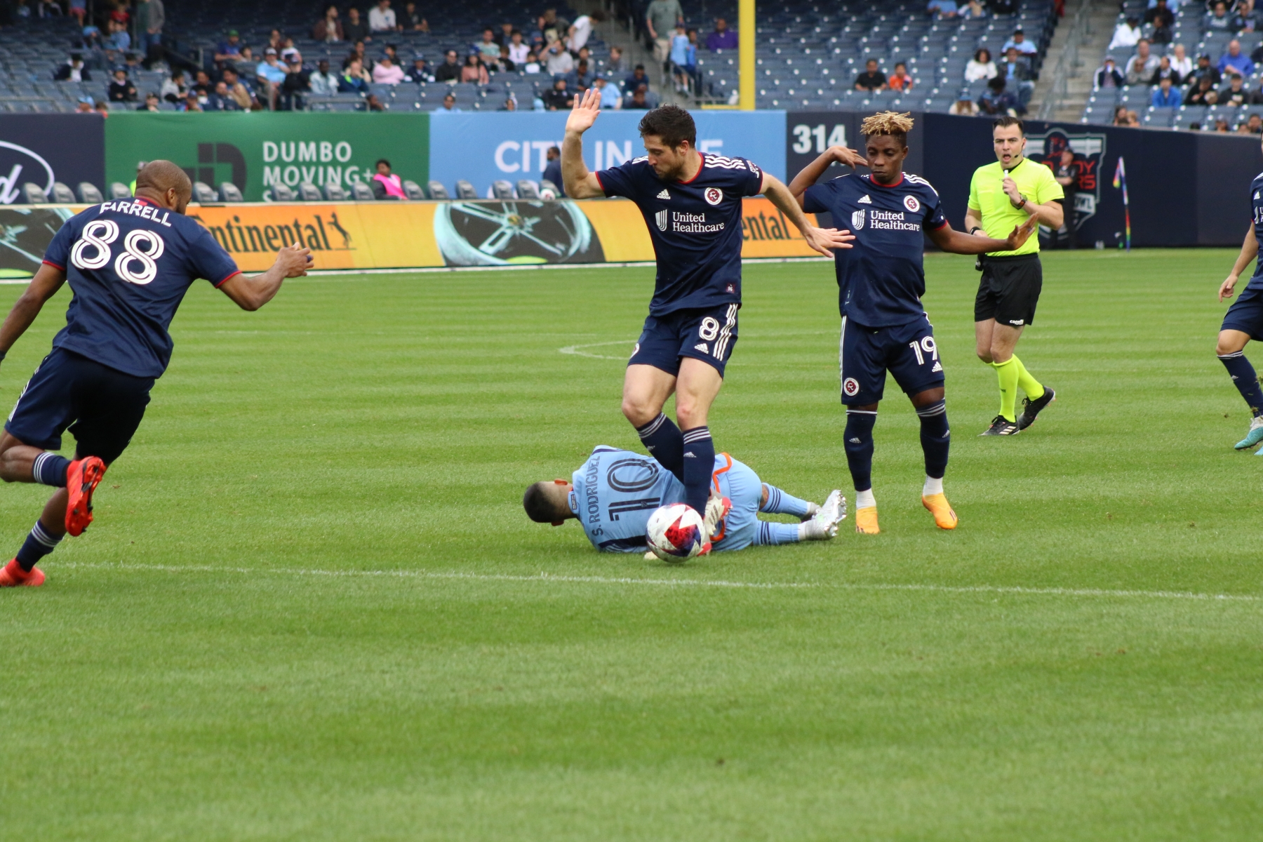 Then New England had their first shot of the night at the 10′ mark, as Matt Polster blasted a right footed shot high of the net. NYCFC had back-to-back chances by Alfredo Morales and Keaton Parks, prior to an attempt at the 18′ by Pereira.