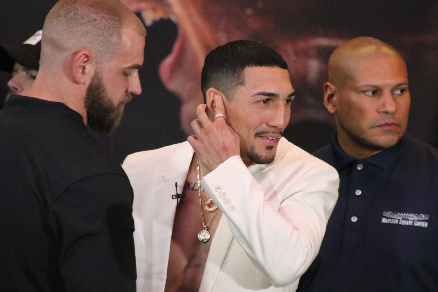 Things got especially spicy at the Press Conference held at Madison Square Garden as the member of the NYPD had to step in to calm the two combatants down: