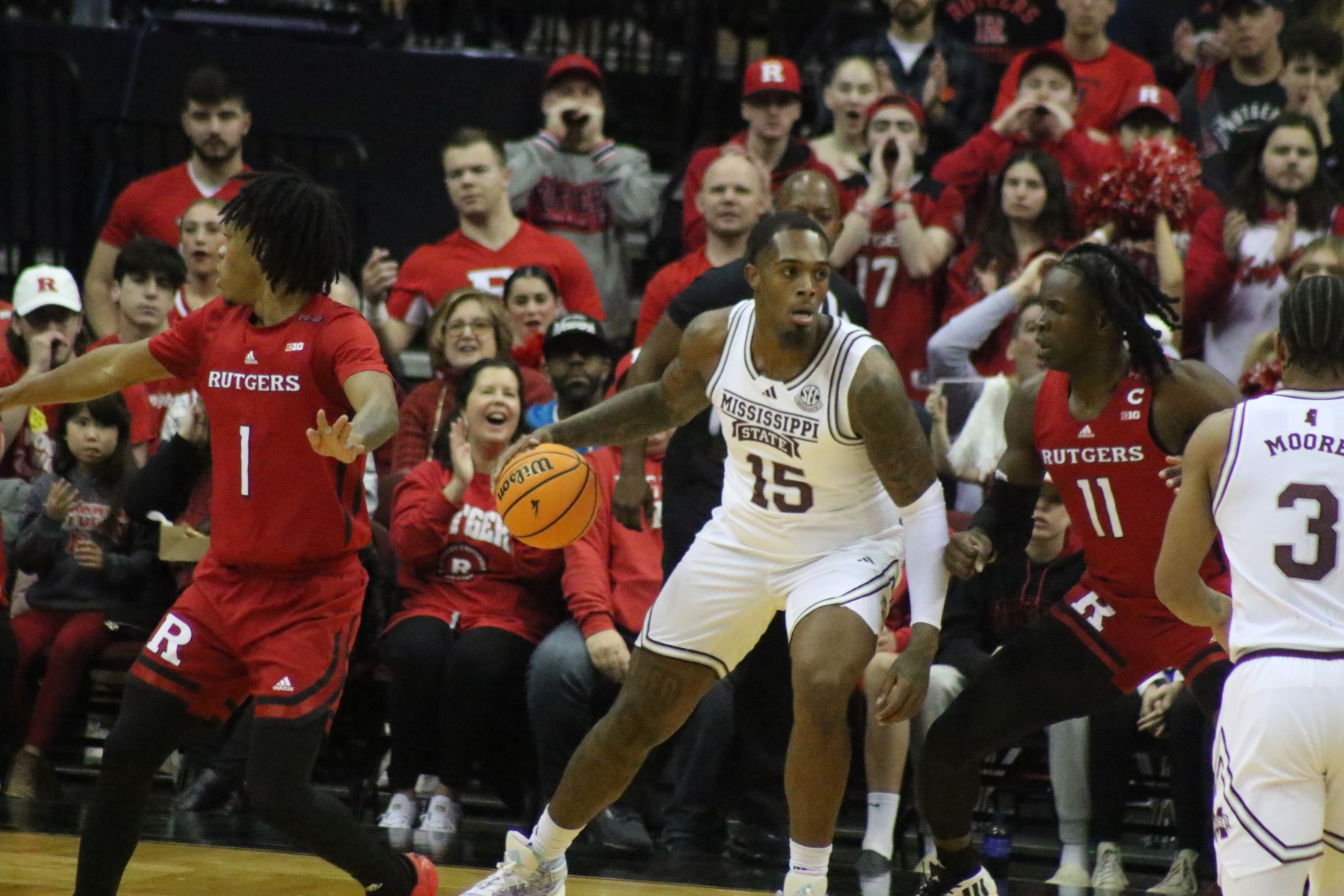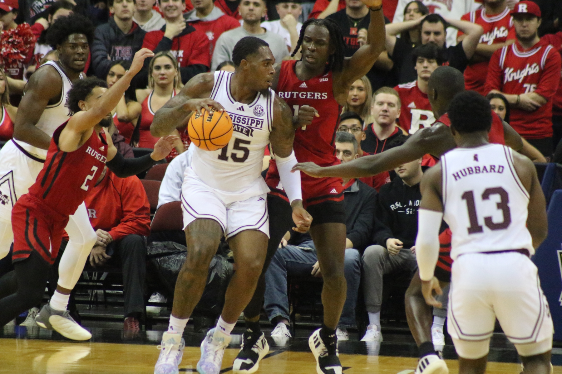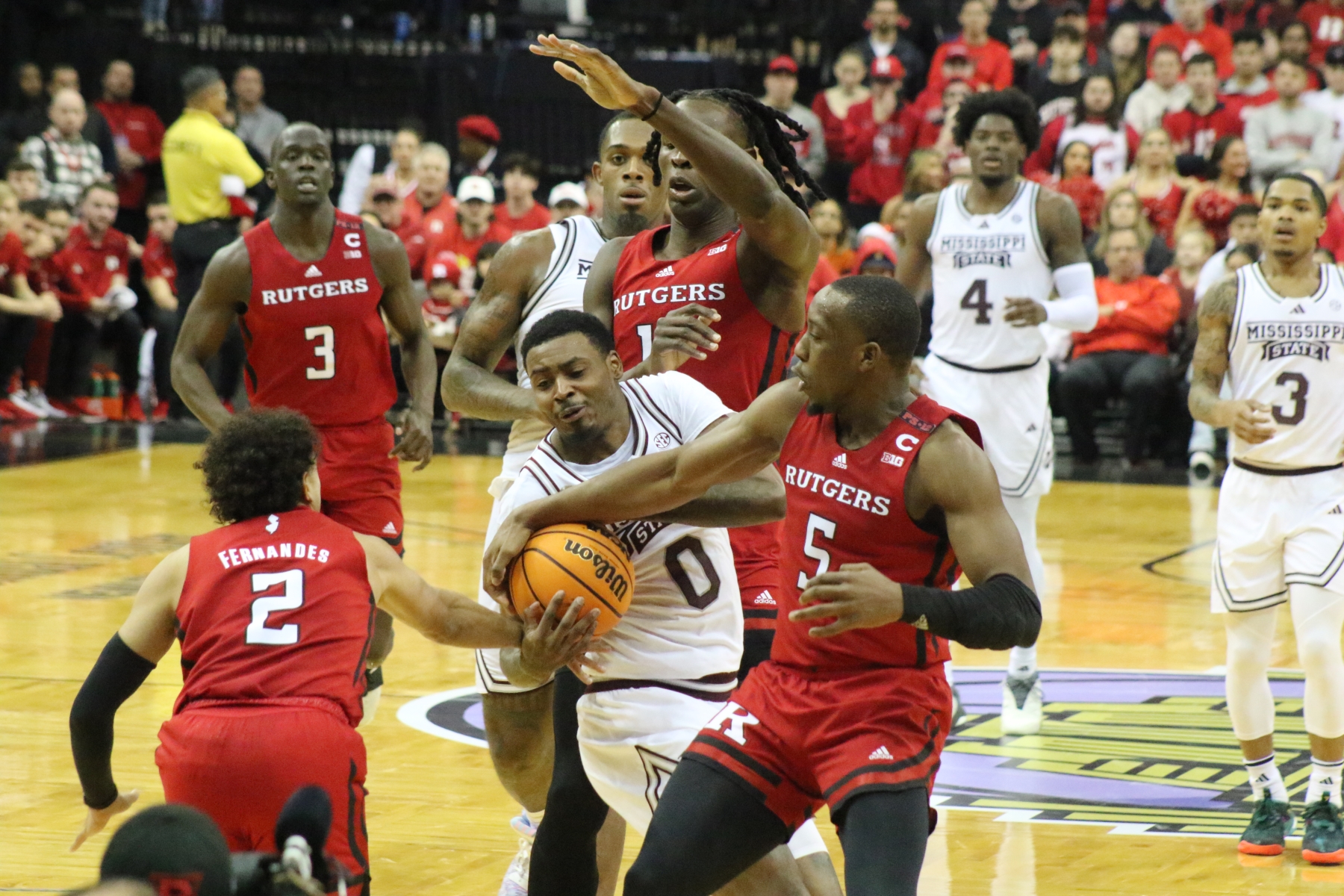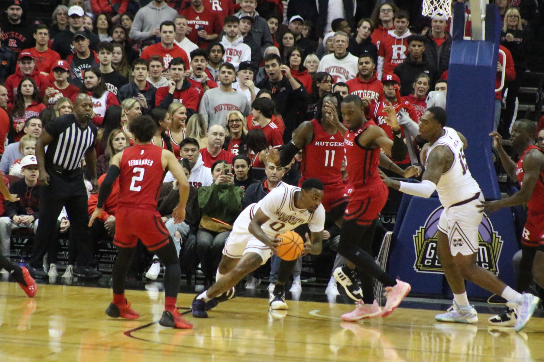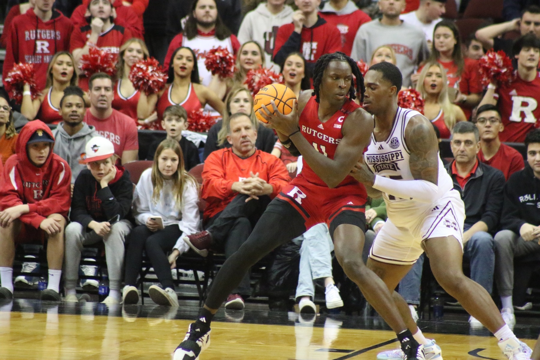 Rutgers playing behind a Prudential Center filled with fans of the Scarlet Knights featured some thrilling moments, including a three-pointer by Aundre Hyatt to get Rutgers and Mississippi State tied at 29 heading into the Half.