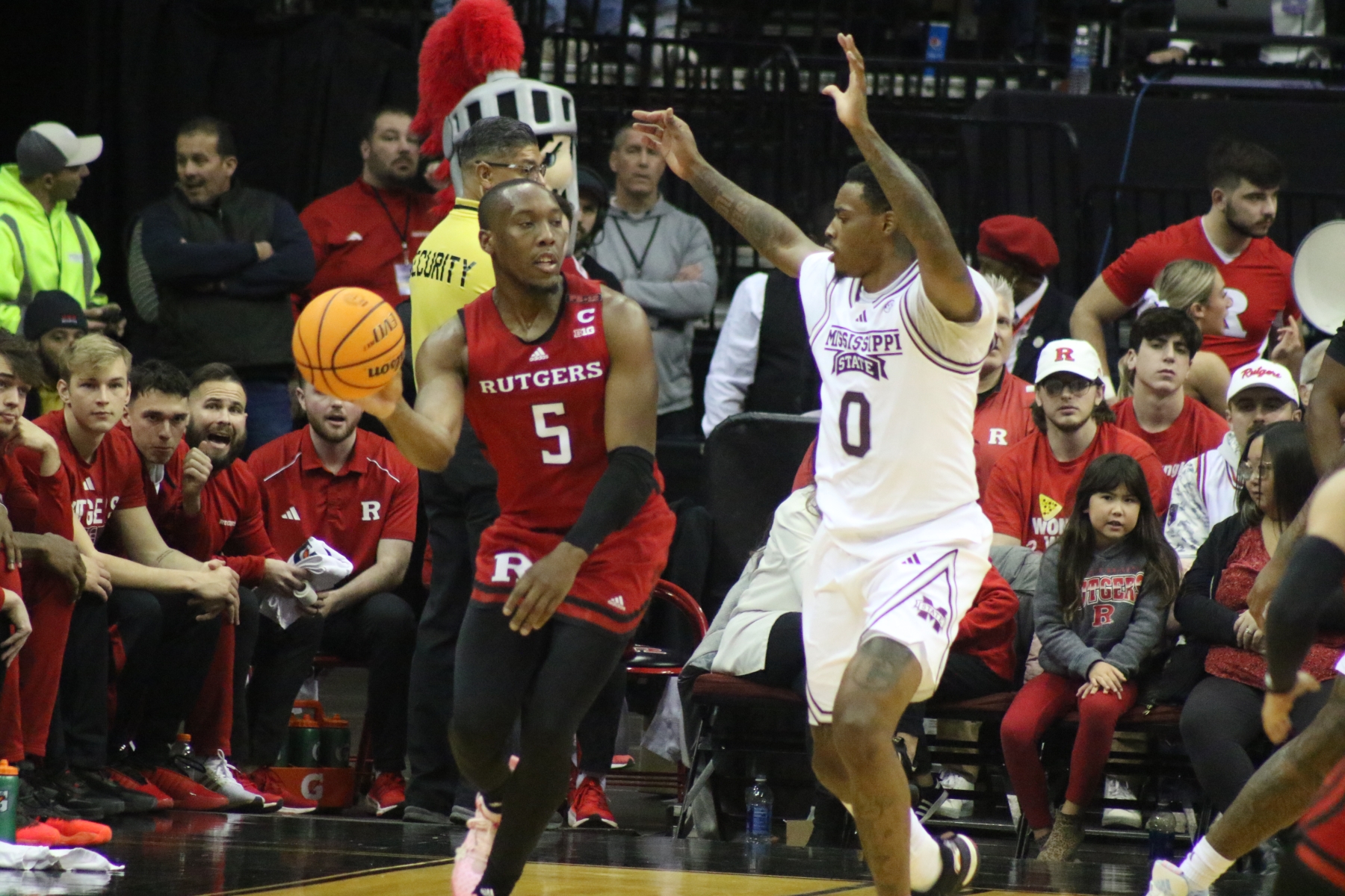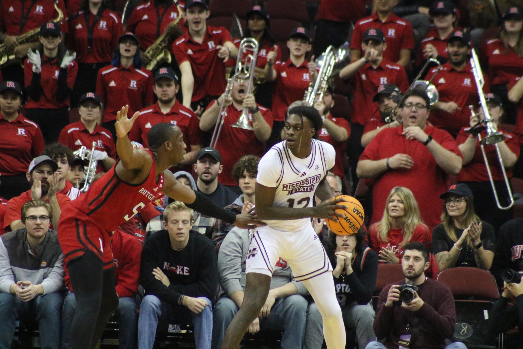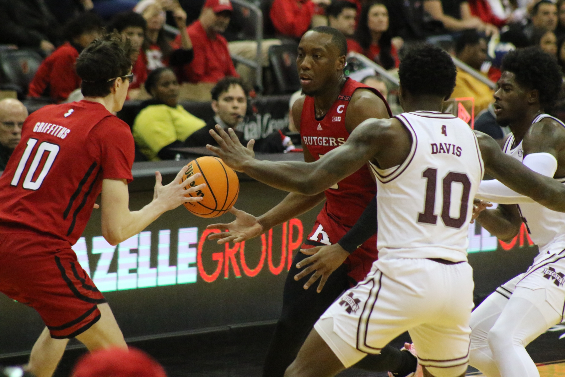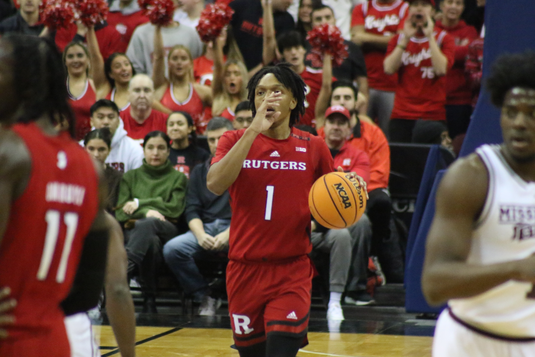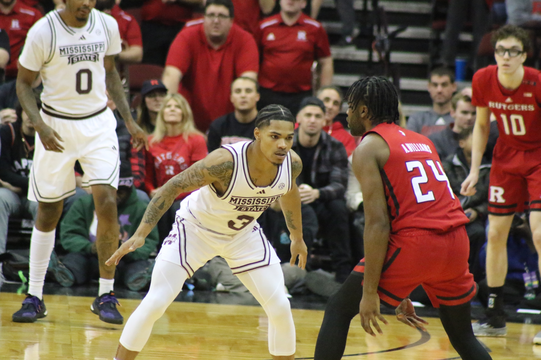 Rutgers playing behind a Prudential Center filled with fans of the Scarlet Knights featured some thrilling moments, including a three-pointer by Aundre Hyatt to get Rutgers and Mississippi State tied at 29 heading into the Half.