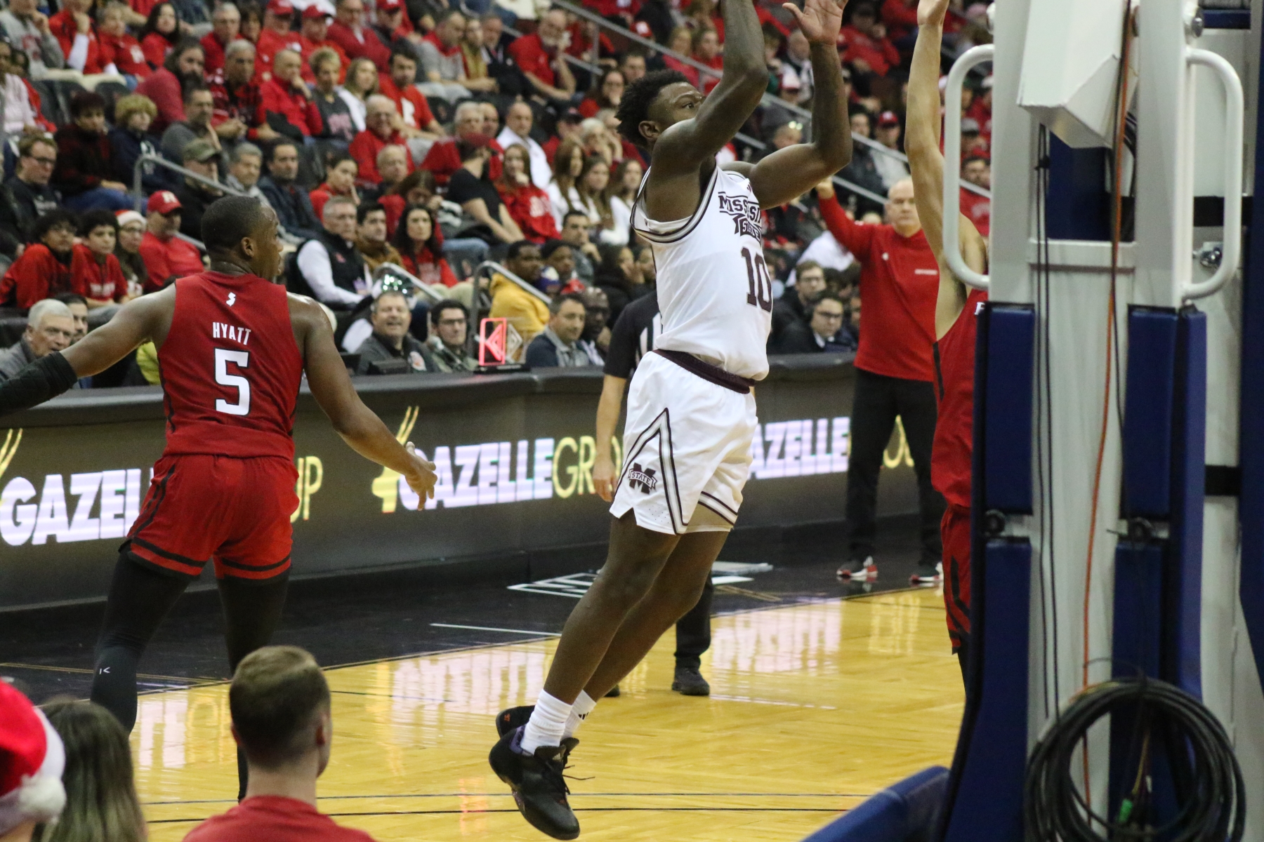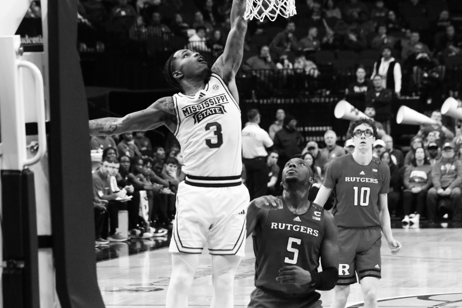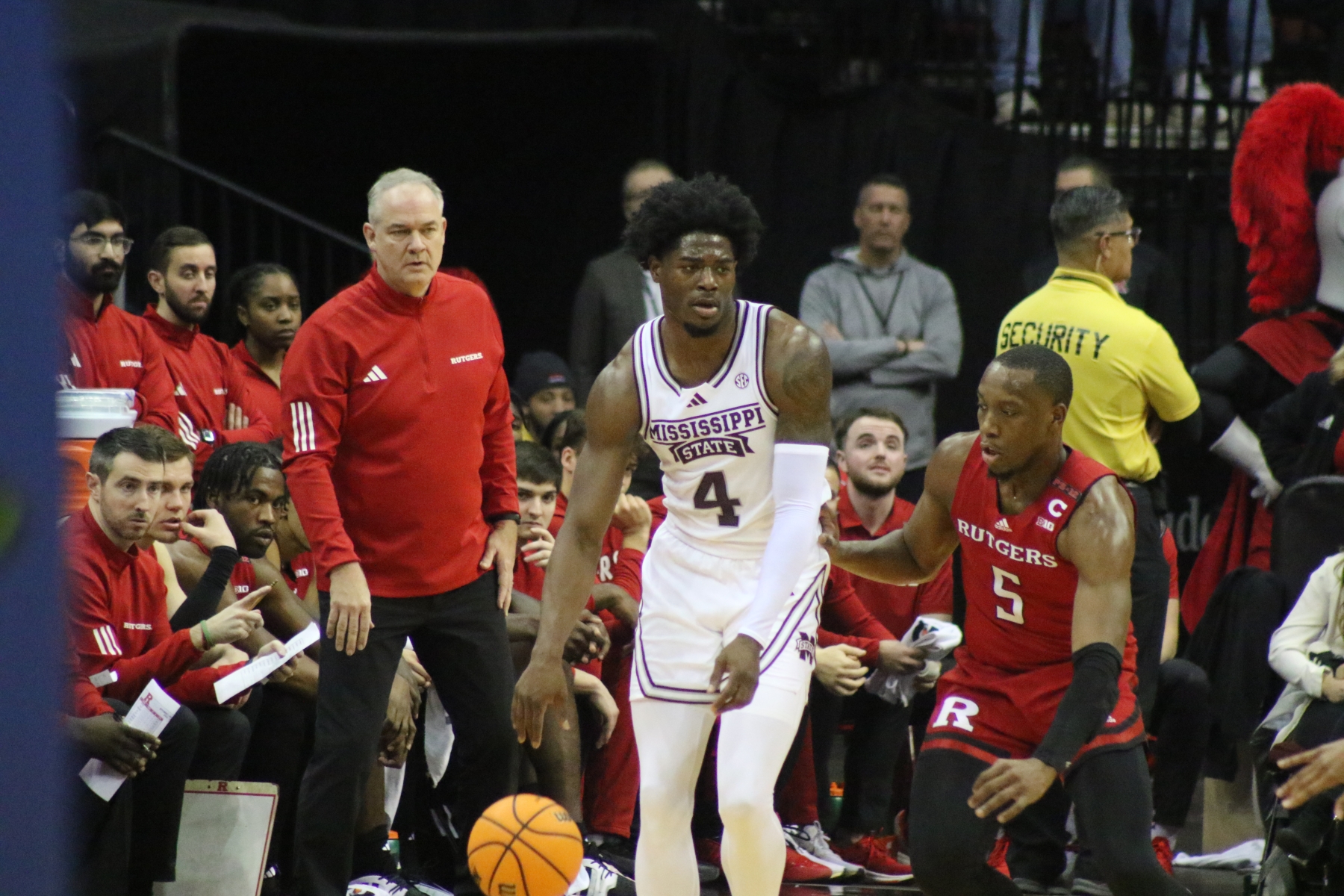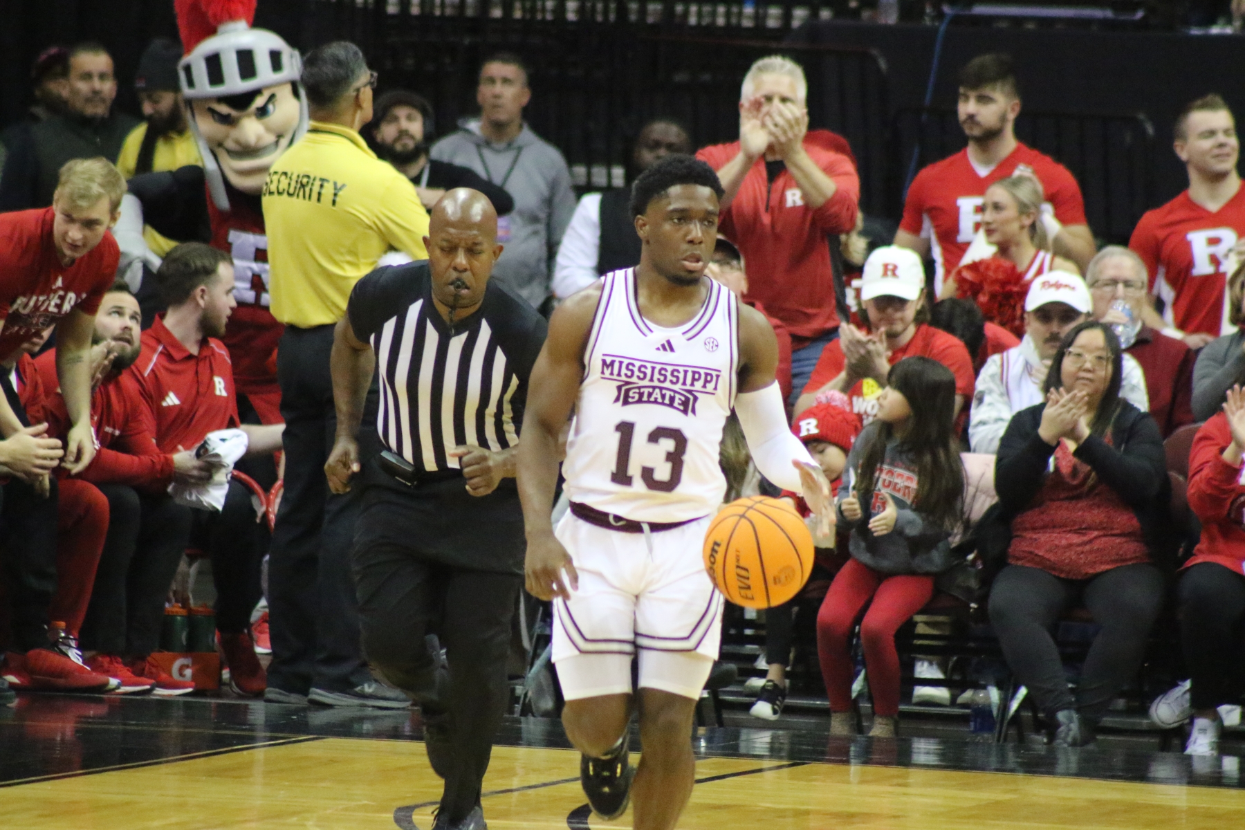 Rutgers playing behind a Prudential Center filled with fans of the Scarlet Knights featured some thrilling moments, including a three-pointer by Aundre Hyatt to get Rutgers and Mississippi State tied at 29 heading into the Half.