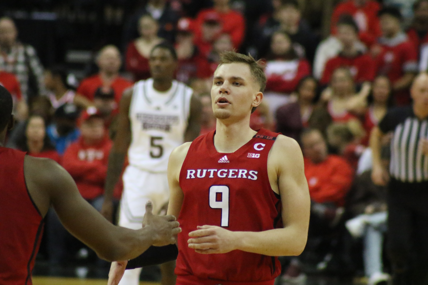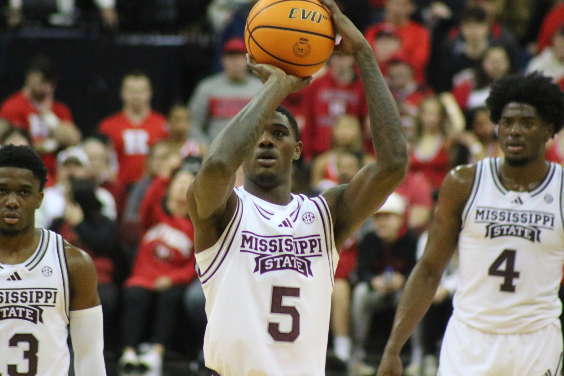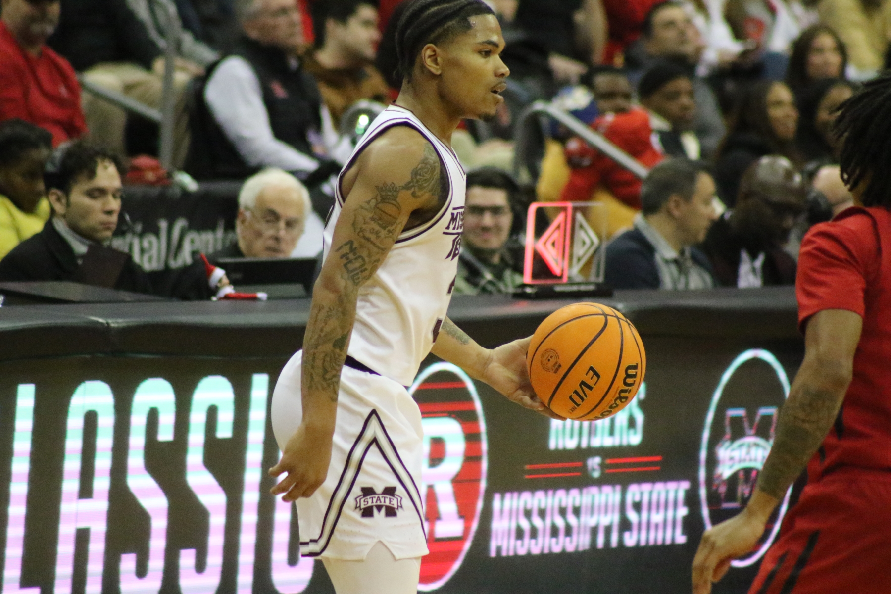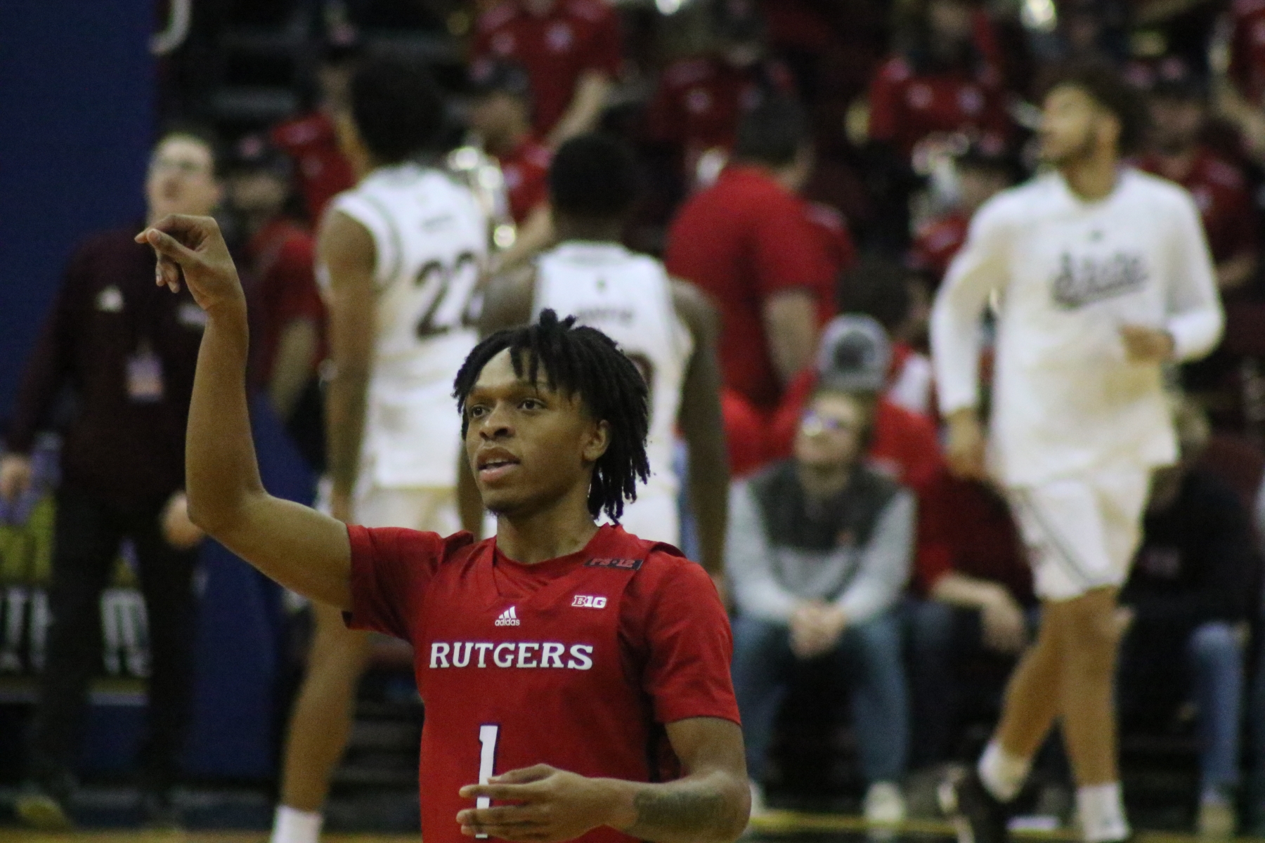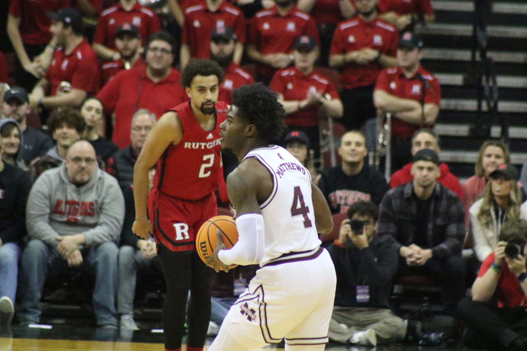 Rutgers playing behind a Prudential Center filled with fans of the Scarlet Knights featured some thrilling moments, including a three-pointer by Aundre Hyatt to get Rutgers and Mississippi State tied at 29 heading into the Half.