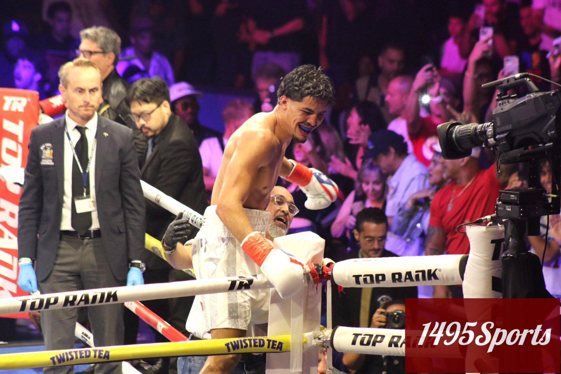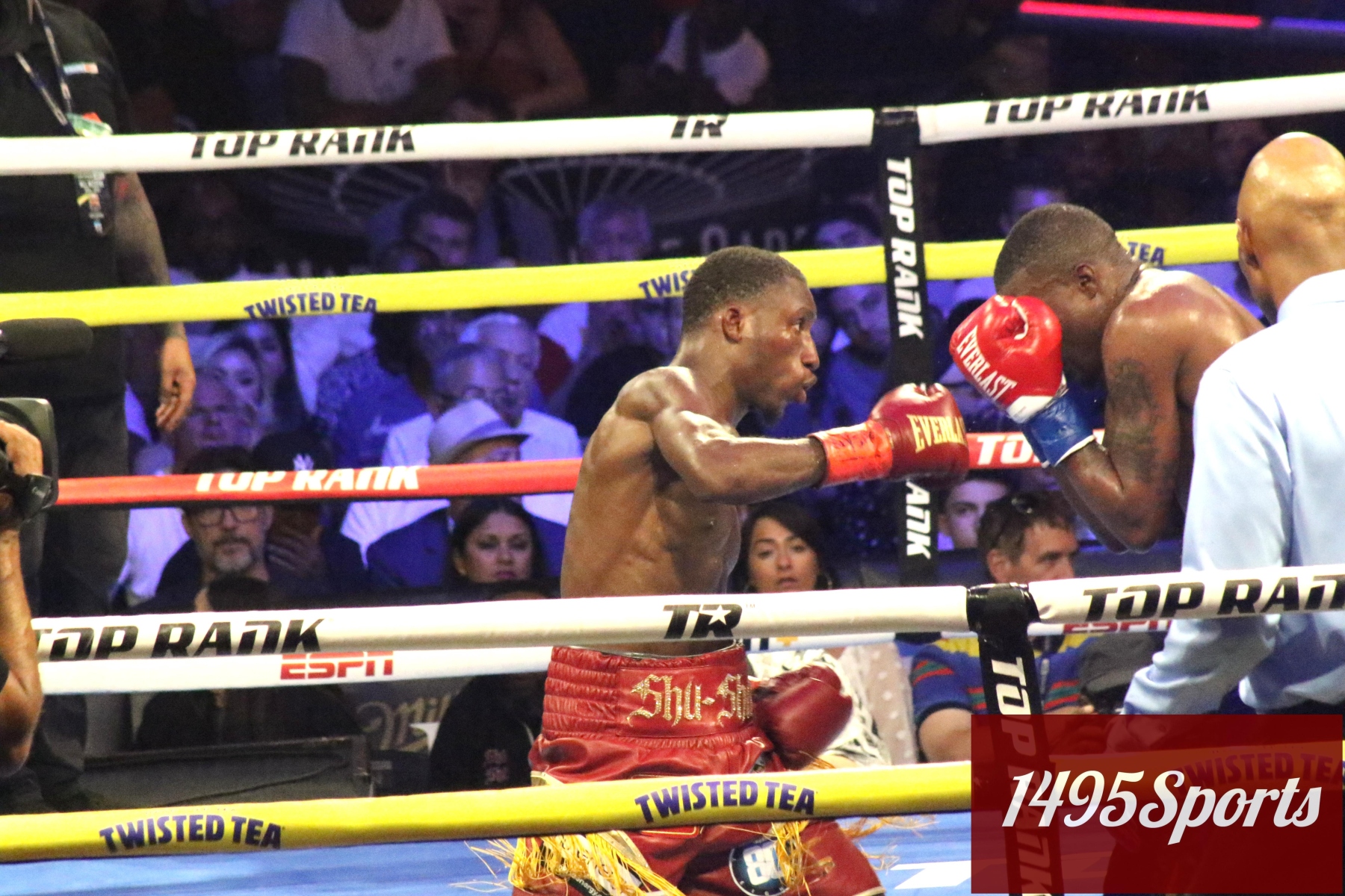 This fight night for Top Rank was a very special one as they had a ton of celebs in attendance that night. They had movie star Rosie Perez in attendance, they also had Richard Torrez Jr. and Tiger Johnson.